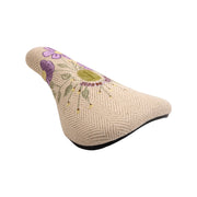Blooming continues: The Odyssey x Bloom v2 Slim & Fat Seat is the follow-up to our successful collaboration with Beatrice and Angie from The Bloom BMX. This new edition keeps the same slim, lightweight design of the first version while adding fresh embroidered graphics on an off-white herringbone pattern.
