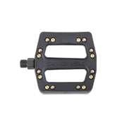 The Odyssey OG PC Pedal boasts innovative pedal technology that simplifies its overall design while remaining extremely lightweight. The use of durable plastic bodies eliminates the need for bearings and allows for a stronger spindle than traditional pedals. Metal pins provide exceptional grip and even if removed on one side for grind tricks, the pedal will still operate as normal. This design also eliminates any flimsy outboard end caps and allows for easy and affordable replacement of pedal body halves instead of the entire pedal.