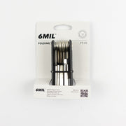 The 6MIL FT-01 Folding Tool is a compact, lightweight essential for every rider’s kit. Designed for convenience and reliability, it features forged chrome vanadium steel bits housed in a tough yet lightweight alloy body, ensuring long-lasting strength without unnecessary bulk.