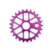 The Nexus Sprocket is a lightweight and affordable BMX sprocket made from CNC-machined 6061 aluminum, featuring a webbed spoke design for strength and reduced weight. Suitable for street and park setups.