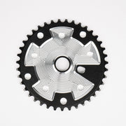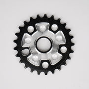 Hutch 25T Sprocket is designed for 20" freestyle applications such as the 2015-present modern-technology Trick Star which are designed for the 25-9 gear ratio. This sprocket includes the traditional boss-drive method similar to old-school 1980's cranks, and is compatible with the current boxed Aerospeed crank set. The Hutch sprocket's two colors have the appearance of a two-piece disc/chainring, and the holes are designed to allow you to put chainring bolts of your color choice in the 5 outer holes to enhance that appearance of the old-school two-piece design. The result is a modern version of the Hutch Aerospeed Disc and chain ring yet in a smaller 25T one-piece design.