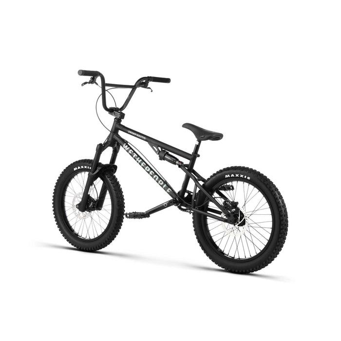 The WETHEPEOPLE SWAMPMASTER combines MTB versatility with BMX handling in one full-suspension package. German-engineered with premium BMX and MTB components from Maxxis and Manitou, it excels at both bike parks and dirt jumps, pioneering a new category in cycling design.